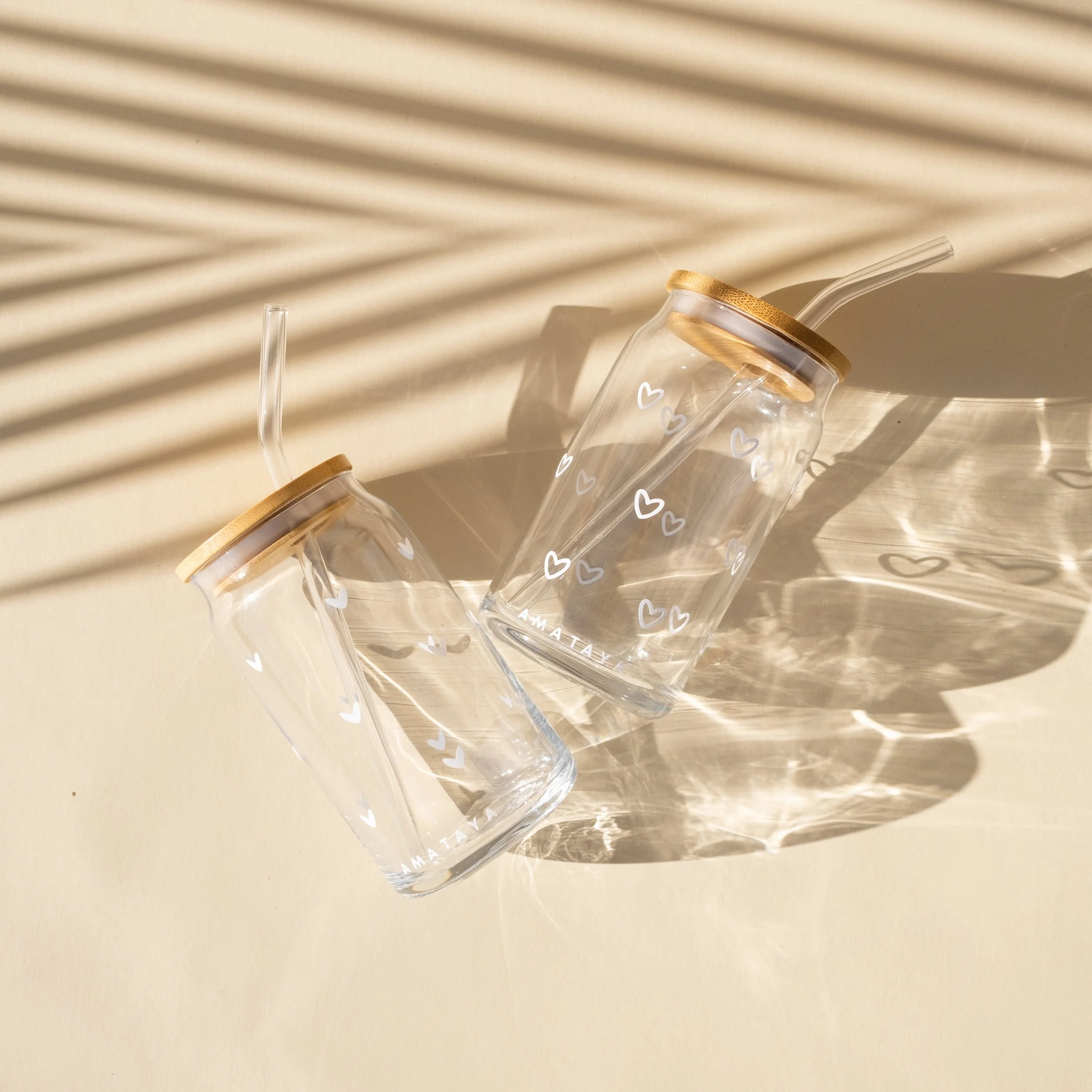 enjoy your favorite beverages in a stylish and sustainable fashion with amataya’s adorable heart glass can cups! treat your loved ones, or yourself, to an aesthetic and 100% reusable tumbler to keep the user and planet’s hearts happy. our glasses are also suitable for the home, office, or on-the-go with a silicone-lined lid and straw opening to minimize spillage.